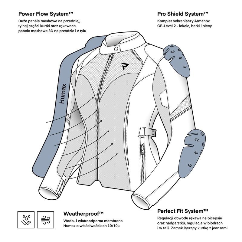 Wypinana membrana HUMAX® 10k/10k chroniąca przed deszczem i wiatrem