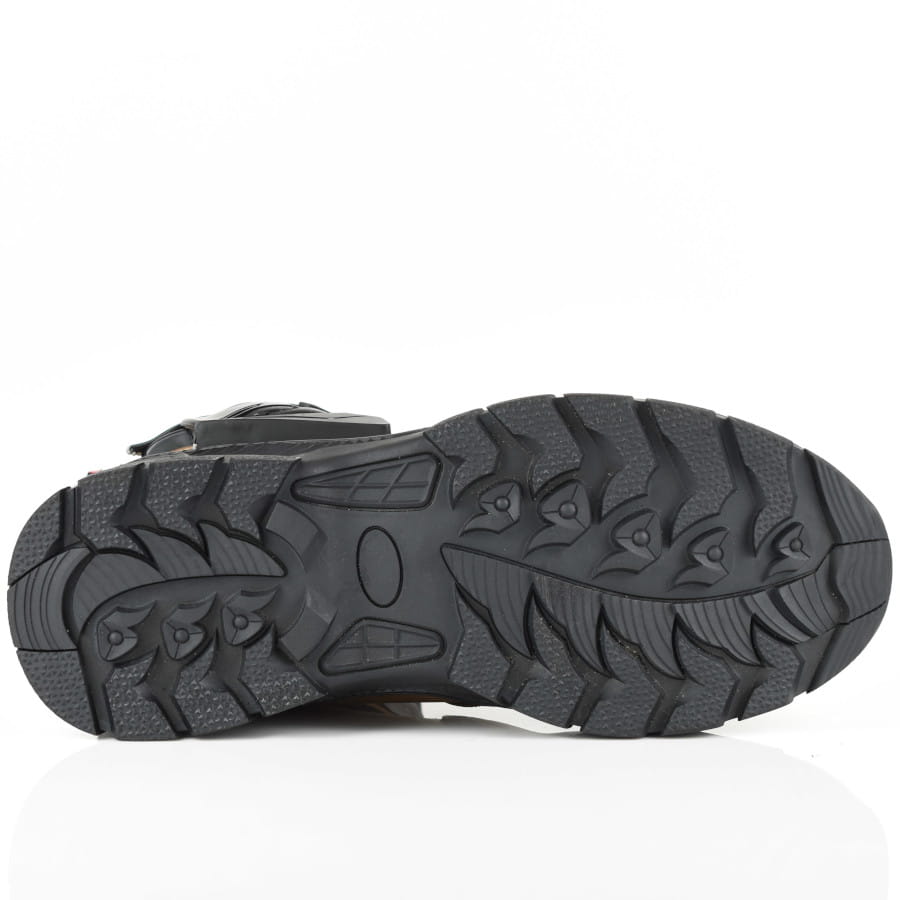 Dwuwarstwowa gumowa podeszwa zapewnia bardzo dobrą przyczepność na asfalcie, szutrze i mokrej nawierzchni. Stabilna konstrukcja zwiększa kontrolę nad motocyklem i bezpieczeństwo podczas manewrów oraz postoju.