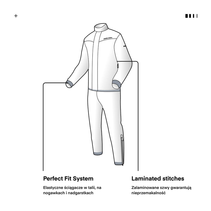 Wykonany z wysokiej jakości poliestru z powłoką PVC kombinezon wyposażono w laminowane szwy, które skutecznie zapobiegają przeciekaniu. System Rebel Dry gwarantuje nieprzemakalność nawet w trudnych warunkach pogodowych.