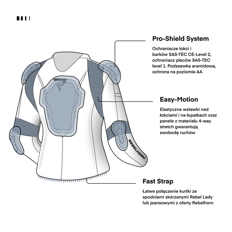 Rebel Lady oferuje kompleksową ochronę potwierdzoną certyfikatem CE (klasa AA):