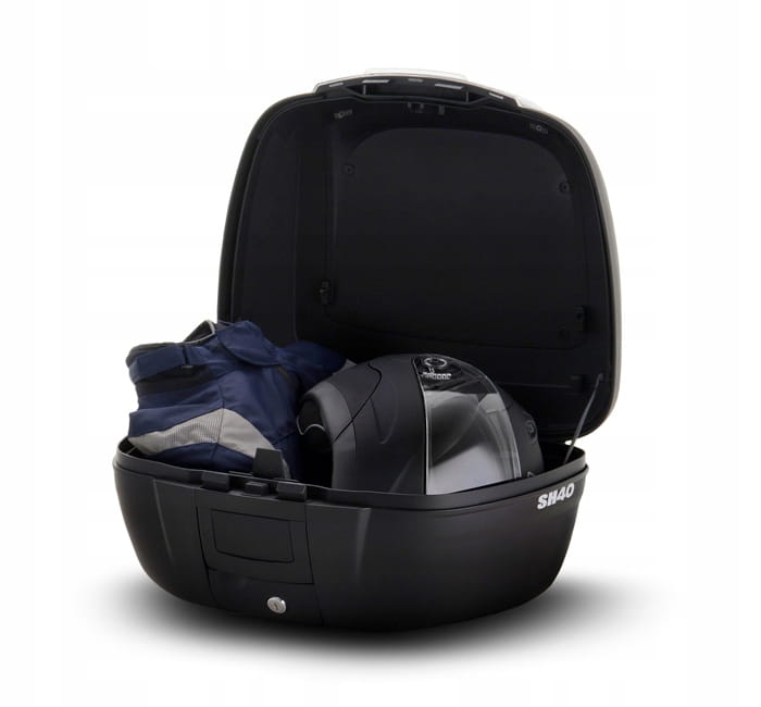 SHAD SH40 Top Case to funkcjonalny kufer motocyklowy o pojemności 40 litrów, który sprawdzi się zarówno w mieście, jak i podczas dłuższych wyjazdów. Bez problemu pomieści 2 kaski typu jet lub większą ilość dodatkowego bagażu, zachowując kompaktową i estetyczną formę.