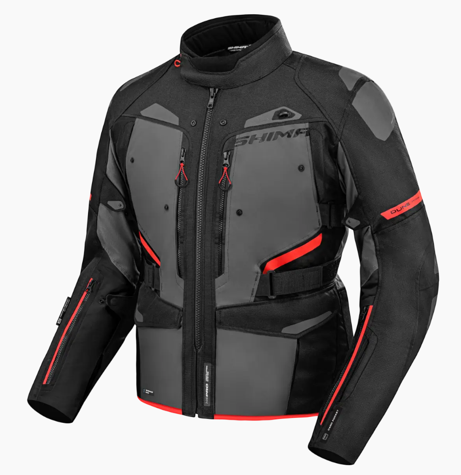 SHIMA Dune Men Red to kurtka turystyczna dla motocyklistów, którzy chcą połączyć komfort, bezpieczeństwo i styl na każdej trasie.