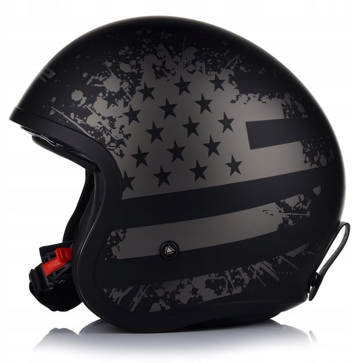 Matowa czarna powierzchnia z delikatnym motywem flagi USA nadaje kaskowi charakter cruisera/choppera, jednocześnie zachowując nowoczesny i elegancki wygląd.