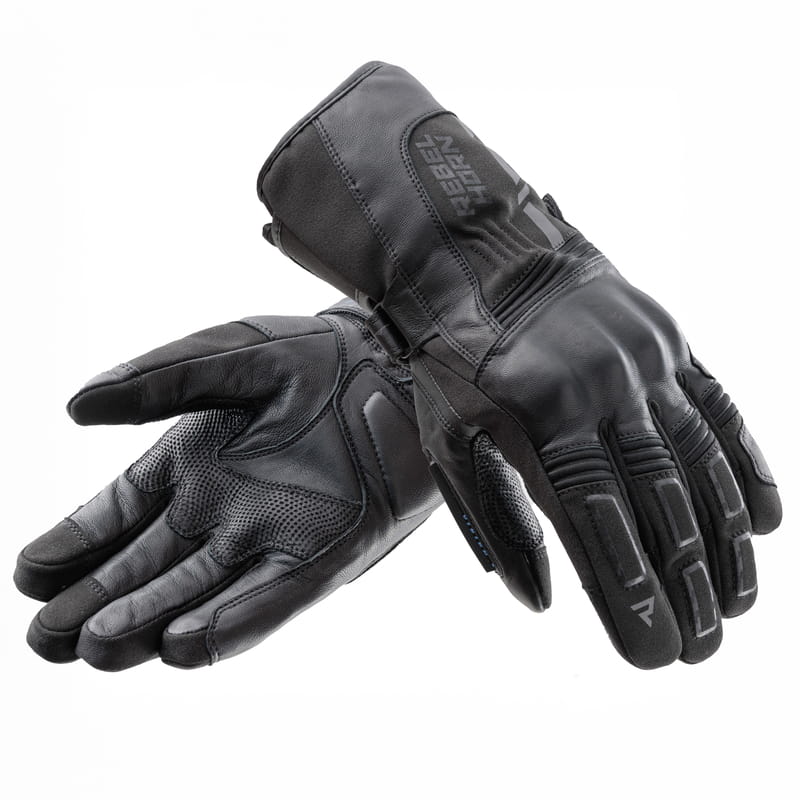 Rękawice motocyklowe skórzano-tekstylne Rebelhorn Tracer WP Black – wodoodporność i funkcjonalność w trasie