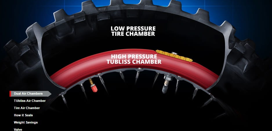 Komora niskiego ciśnienia — znajduje się w przestrzeni opony, umożliwiając jazdę na bardzo niskim ciśnieniu (0-0,7 bar) dla idealnej trakcji.