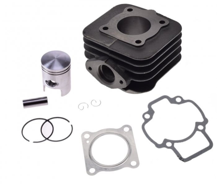 W zestawie znajduje się cylinder, kompletny tłok oraz uszczelki, co pozwala na szybką i bezproblemową wymianę elementów silnika w skuterze.