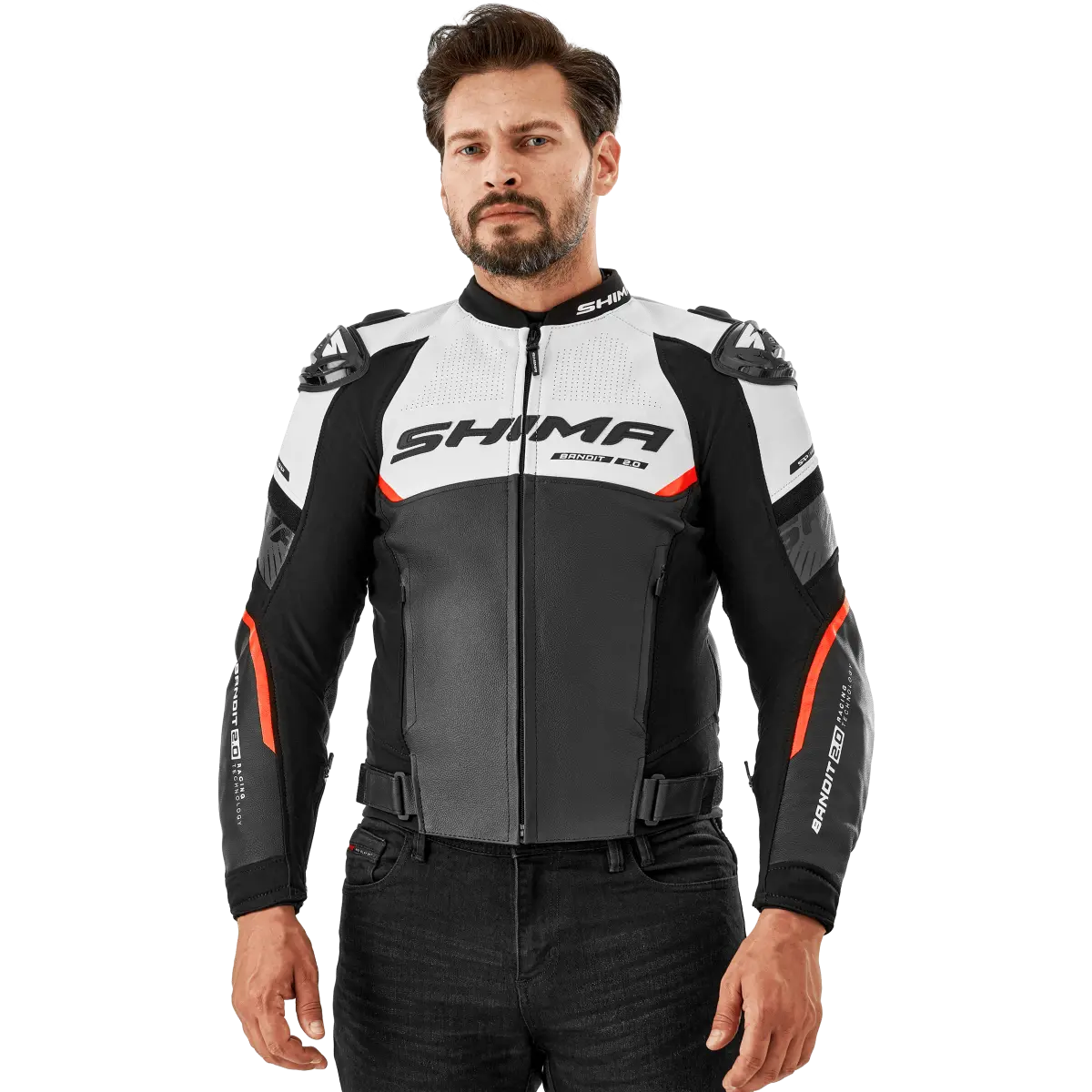 Skórzana kurtka motocyklowa SHIMA Bandit 2.0 Red – miejski drapieżnik w czarno-białej kolorystyce