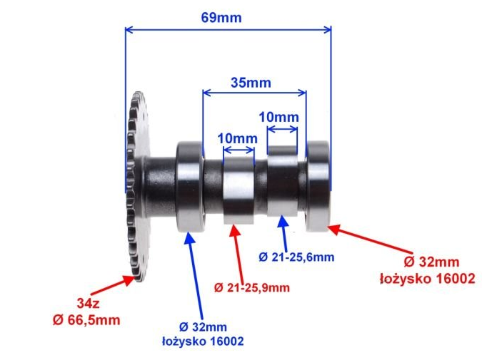 Wałek rozrządu pasuje do większości skuterów 4-suwowych z silnikami GY6, takich jak Baotian, Zipp, Keeway, Romet, Kymco, Junak, Barton i wiele innych. To idealne rozwiązanie dla użytkowników poszukujących części zamiennych o wysokiej precyzji wykonania.