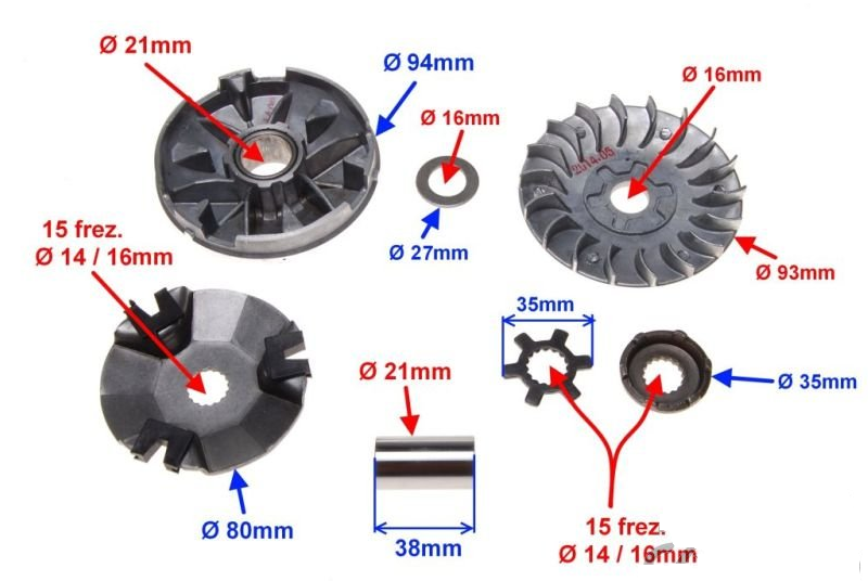 Wariator do skuterów 2T z otworem na wał 16 mm